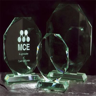 Large jade green octagon award 185mm high supplied in a satin lined gift box