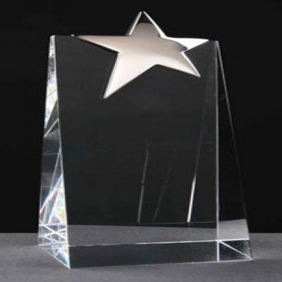 Medium crystal star wedge award with silver chrome star 175mm high supplied in a satin lined gift box