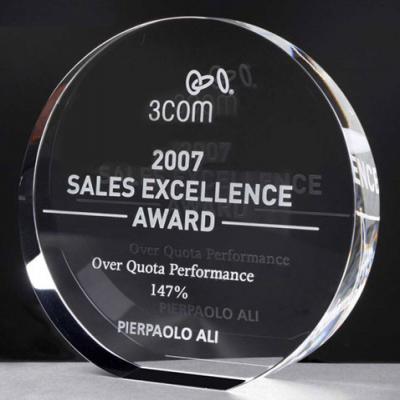 Medium crystal wedge circle award 150mm high supplied in a satin lined gift box