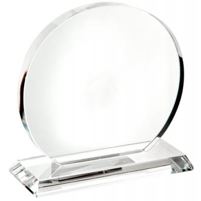 Medium optical crystal circle trophy award 145mm high supplied in a satin lined box