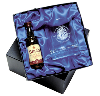 Miniature Bells whisky set supplied in a satin lined box