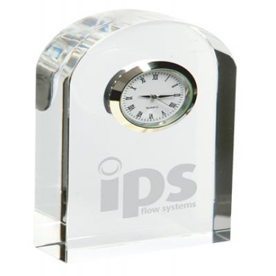 Optical crystal arch clock 120mm high supplied in a satin lined gift box