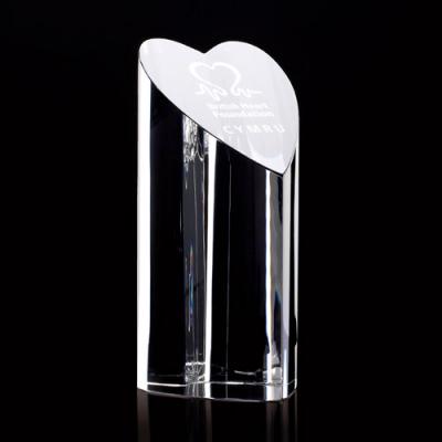 Optical crystal heart prism colum award 150mm high supplied in a satin lined gift box