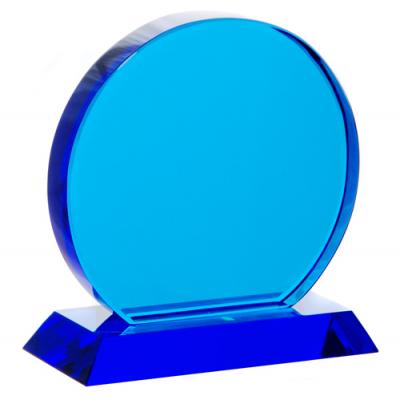 Small blue crystal circle trophy award